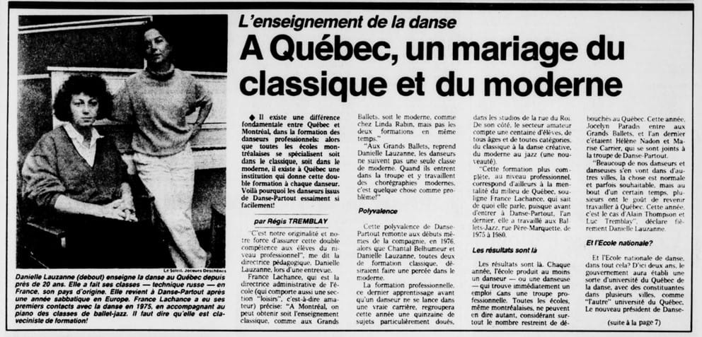 Lorsque l'Académie ferme sa section Québec en 1980, Danielle Lauzanne fonde Acadanse avec Hélène Vézina, sa propre école de ballet classique. Deux ans plus tard, elles rejoignent le Groupe Danse Partout inc., qui regroupe déjà une école et une compagnie de danse moderne. En 1987, cette entité fusionne avec le Centre de danse de Québec, sous la gouverne de Dominique Turcotte. Après une année sabbatique, Mme Lauzanne reprend l'enseignement du ballet classique à L'École de danse de Québec, où elle œuvre jusqu'à son départ à la retraite.