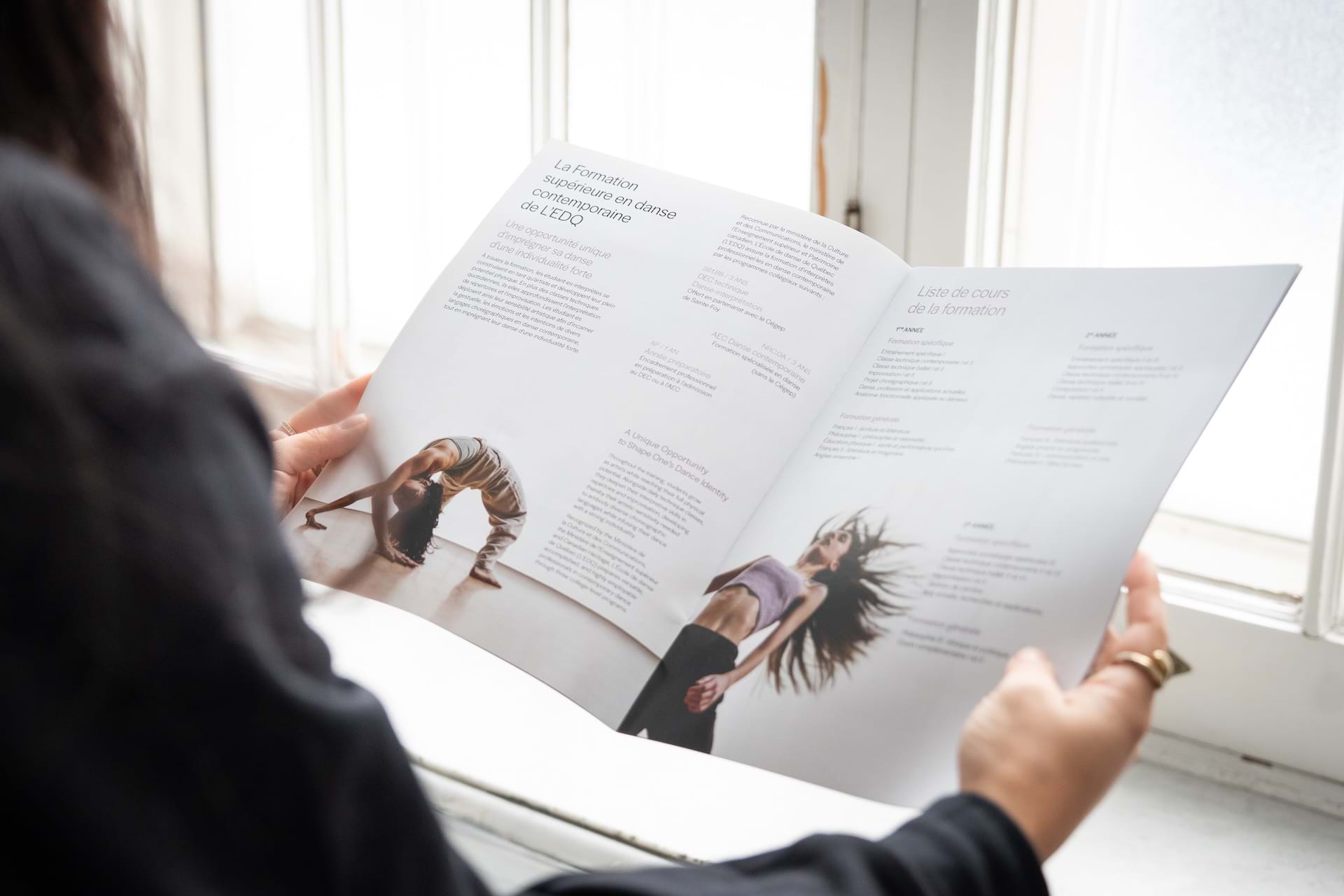 L’EDQ dévoile son tout premier Guide d’admission pour le programme de Formation supérieure en danse contemporaine destiné aux futures candidatures nationales et internationales. Cet outil bilingue, disponible aux formats imprimé et numérique, couvre les détails les plus importants du programme d’études supérieures, offrant ainsi une nouvelle porte d’entrée à la formation aux danseurs et danseuses intéressé·es par un parcours professionnel en danse.