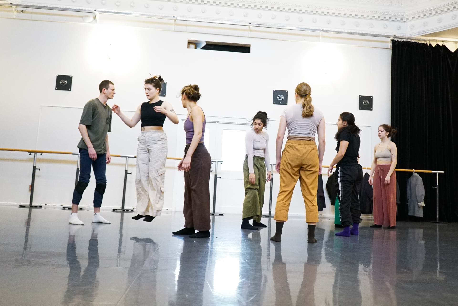 Cela a été très smooth en termes d'évolution chorégraphique, de réceptivité. [Les finissants] sont très concentrés. S’il y avait quelque chose avec lequel ils n'étaient pas confortables, ils me le disaient. Il y a tellement de choses que je ne peux pas voir, donc d’avoir la présence, la vulnérabilité de pouvoir dire « Je pense qu'on pourrait faire ça. Tu serais d'accord qu'on l’essaie? » [est très important]. La chorégraphie a été créée en collaboration avec les interprètes. Je fais beaucoup d'affaires, mais un chorégraphe, il n'existe pas sans le compositeur, il n'existe pas sans la conceptrice des lumières, il n'existe pas sans la répétitrice, il n'existe pas sans les danseurs.