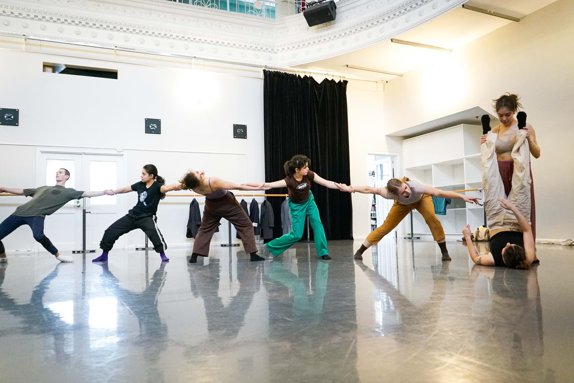 J'essaie de jouer avec les esprits des interprètes. Une des valeurs de ma compagnie, c'est de valoriser les interprètes [...] pas juste en tant que danseurs, mais en tant que créateurs, [c.-à.-d.] des artistes à part entière qui sont intégrés dans le processus. Il faut qu'il y ait un amalgame des deux. Personnellement, je trouve que quand la rencontre se fait, quand cela émerge, on voit une signature chorégraphique claire. Dans ce spectacle, je suis vraiment content parce qu'on voit vraiment que c'est moi, mais on voit que c'est eux aussi. C'est un bel équilibre. Cette pièce en particulier, elle traverse différents états qui sont un peu inspirés du [mon] solo Homo Deus que je suis en train de travailler. La façon dont je travaille, c’est avec des corps chorégraphiques - c'est une nouvelle approche que j'essaie. Il y a des règles très claires pour chacun des corps. Cela donne aux danseurs des paramètres à l’intérieur desquels ils peuvent explorer et improviser. Puis après, j'utilise ce langage pour créer des phrasés chorégraphiques. J'explore beaucoup cette approche au processus que j'ai expérimenté avec eux. La pièce passe à travers différents états.