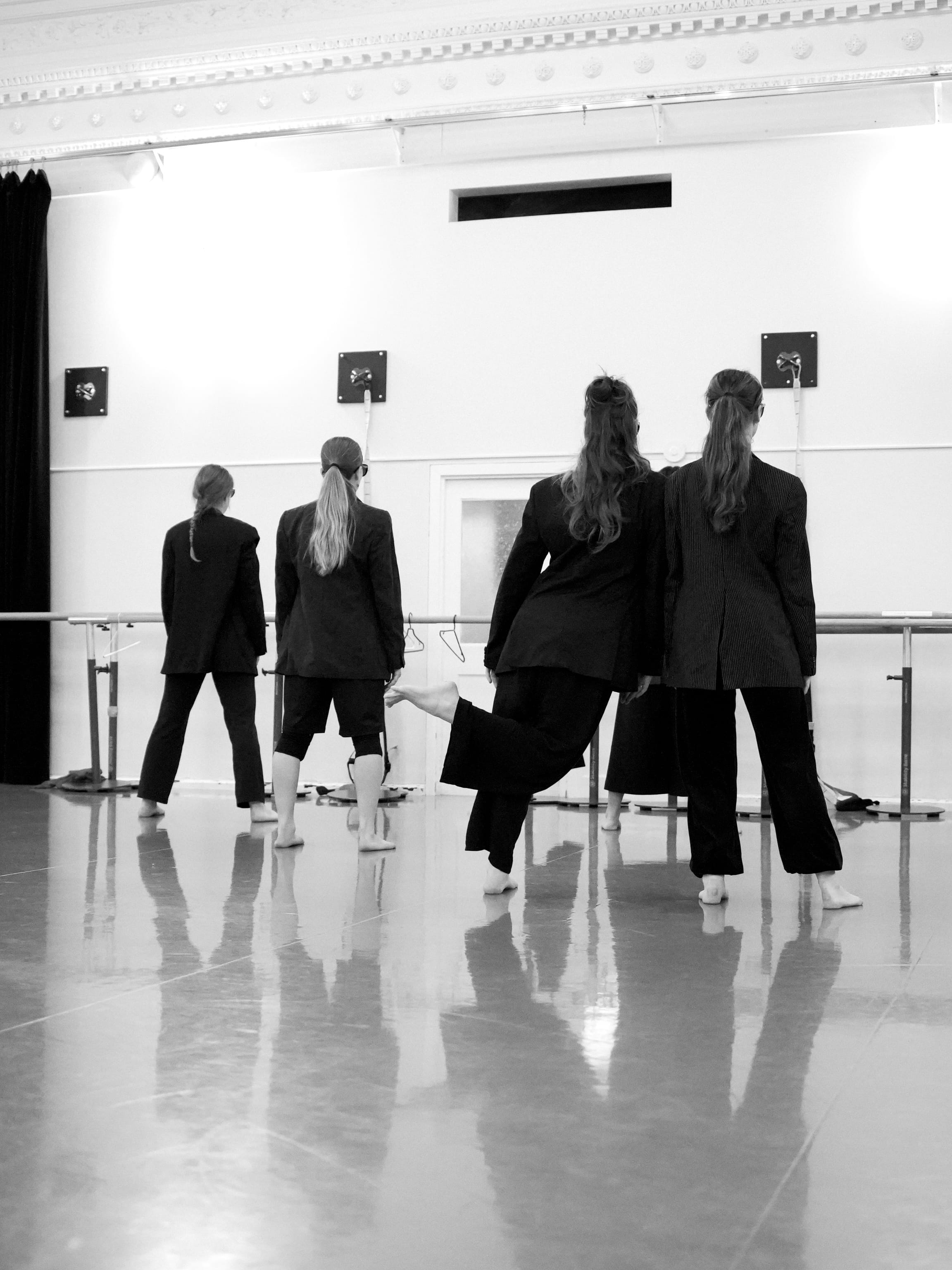 Ça se passe bien, mais les journées ont été très intenses pour nous tous·tes : moi, les interprètes et Francine [Liboiron] aussi qui m'accompagne dans la répétition. Il y a beaucoup d'informations [à transmettre et à recevoir] en deux semaines et demie, avec beaucoup de détails sur le mouvement, sur les articulations du corps, la présence, etc. Les cues de musique sont très compliquées, mais mon objectif était [justement] de faire une pièce avec tous ces détails [complexes] à apprendre, et les interprètes ont travaillé vraiment fort. Ils·Elles ont une excellente mémoire, vraiment, cela m'a beaucoup impressionnée!