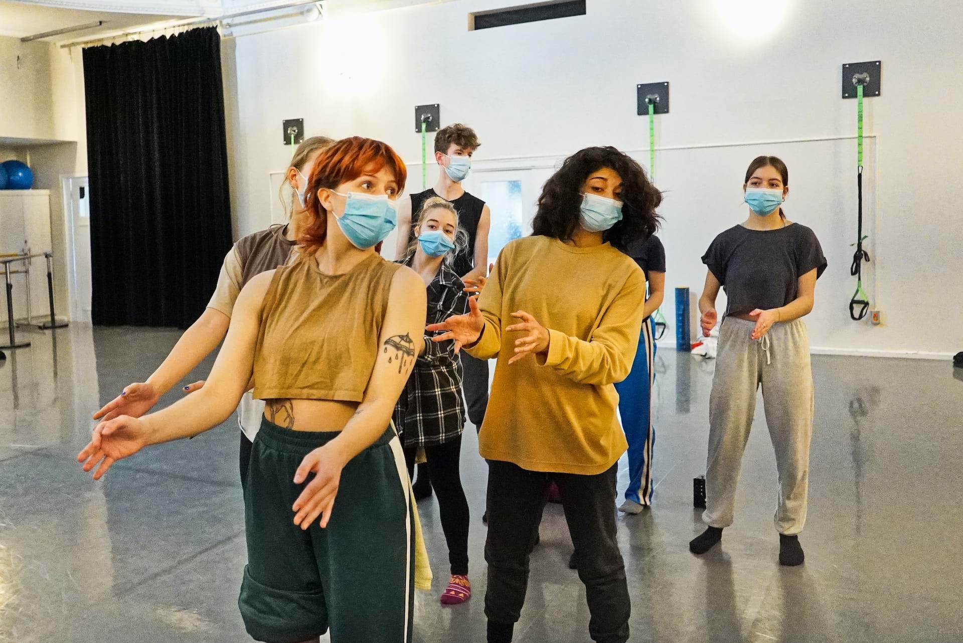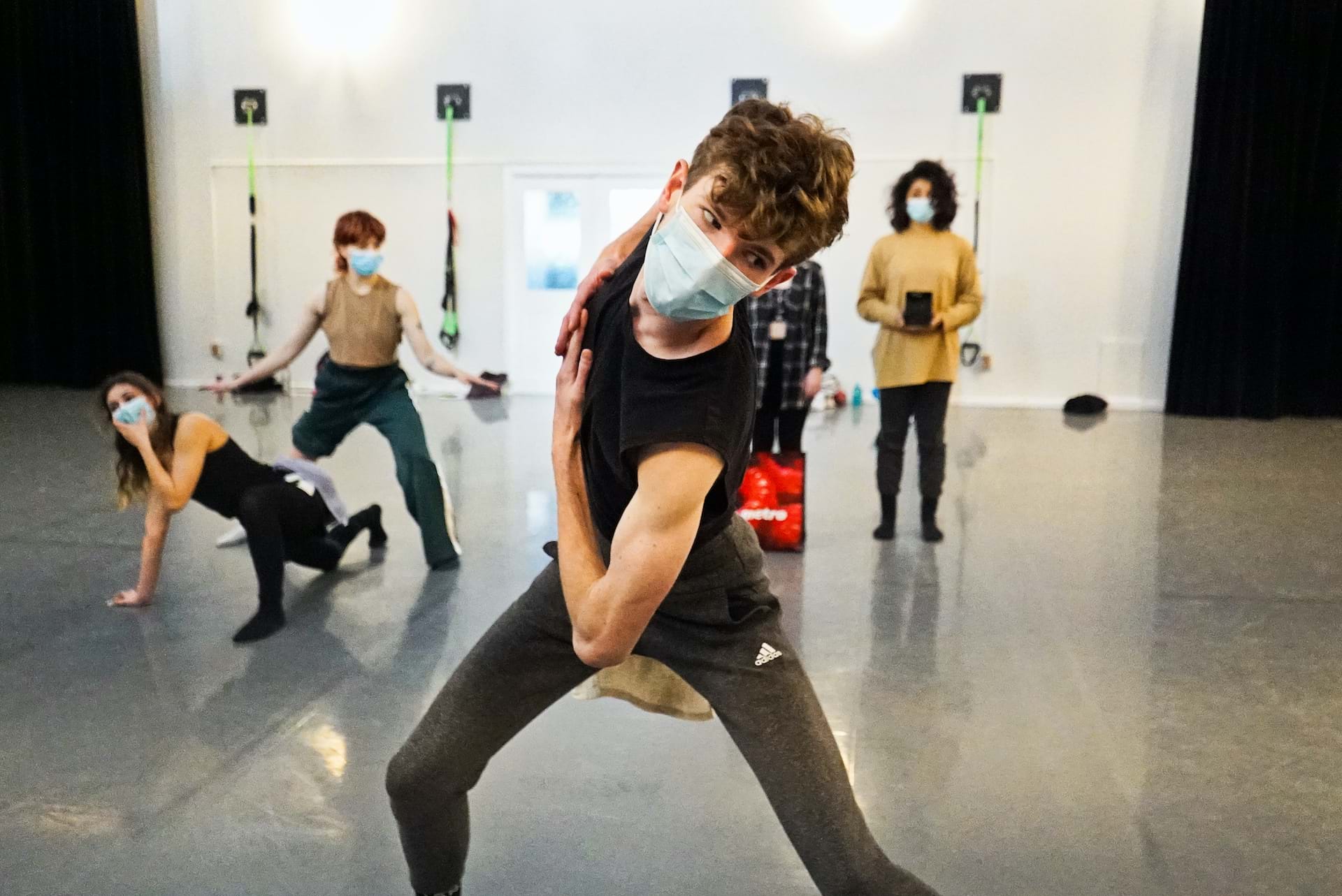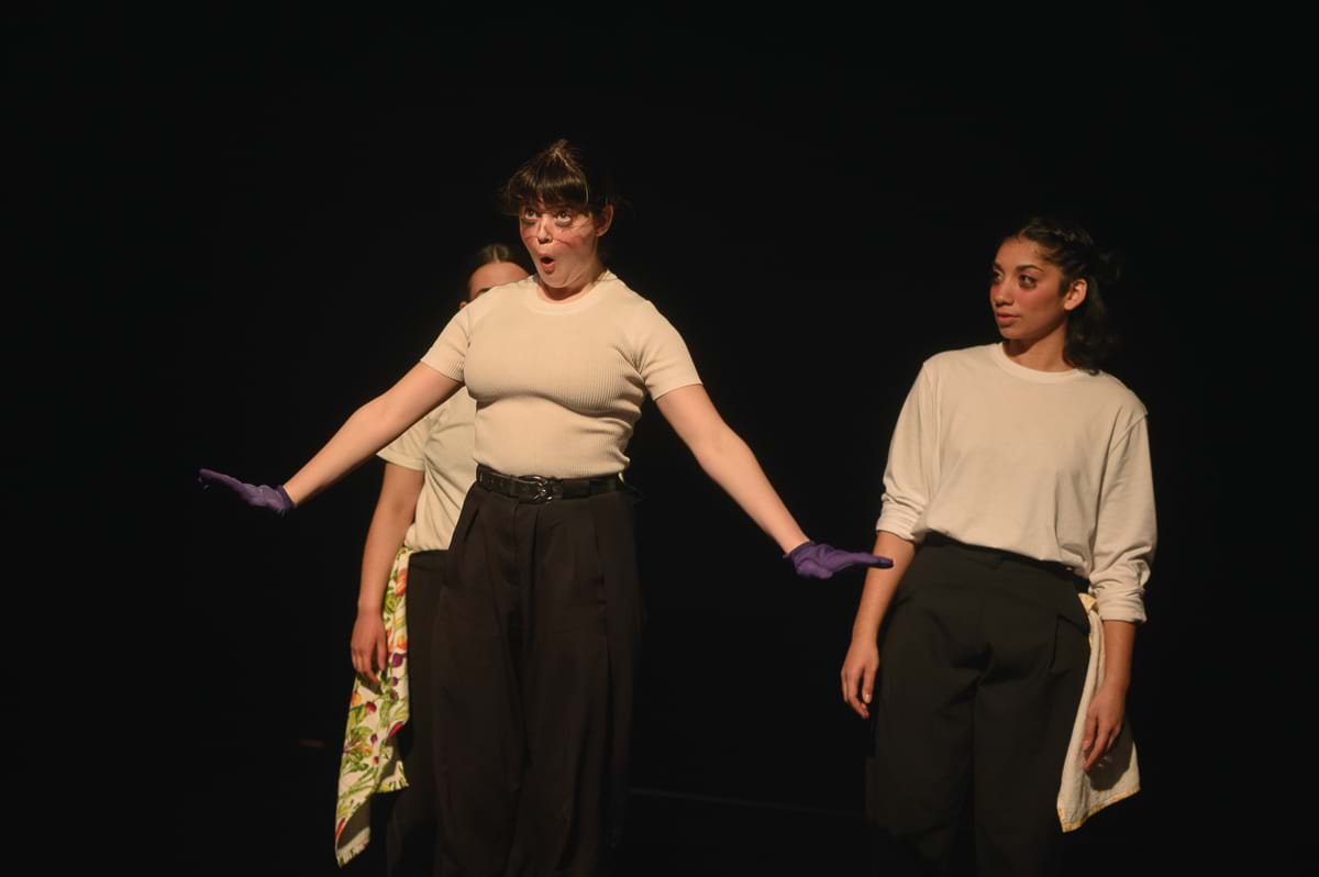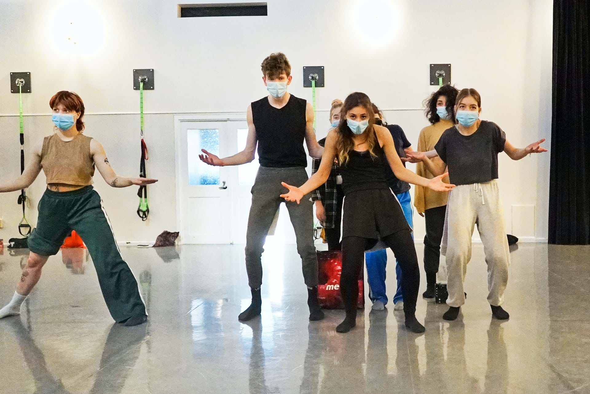 Dès les premières périodes de création, j’étais à la recherche d’un cadre adéquat pour nous permettre de nous rencontrer, à mi-chemin entre nos imaginaires respectifs. Je cherchais à créer un environnement de confiance mutuelle où les étudiant.e.s accepteraient d’étendre leur zone de confort et d’exister avec une certaine authenticité. Puis, j’ai été porté par des envies qui m'habitent depuis quelque temps, soit une recherche d’expressivité spécifique des mains et des visages. Cela rejoint l’une de mes obsessions du moment : exister sur scène dans un dialogue perméable entre son propre imaginaire et l’imaginaire collectif qui se construit dans l’instant présent.