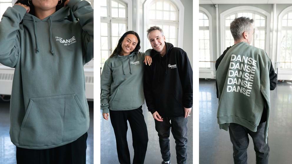 Découvrez la toute nouvelle collection d’articles promotionnels signée L’EDQ! Des t-shirts, des cotons ouatés et même un sac fourre-tout, tous écologiques et au goût du jour ont été choisis pour vous accompagner tant à la danse qu’au quotidien!
