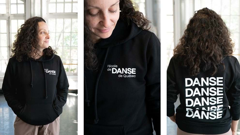 La vente est désormais ouverte à tous·tes! Visitez-nous sur place à l’accueil de L’École de danse de Québec (310 boulevard Langelier, au rez-de-chaussée) lors des heures d’ouverture afin d’acheter votre prochain vêtement ou sac préféré!