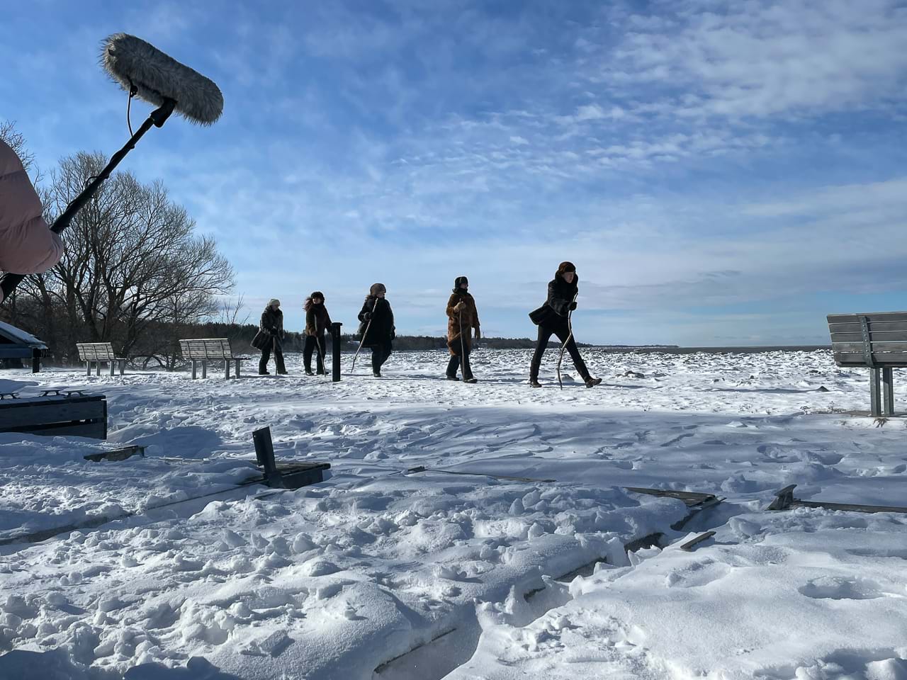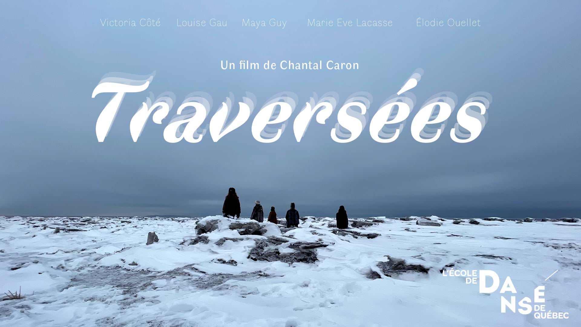 C'est ainsi qu'est né le premier film de danse de L’EDQ, en collaboration avec nulle autre que Chantal Caron, réalisatrice de renommée internationale et fondatrice de la cie Fleuve | Espace danse. Le tournage a eu lieu à Saint-Jean-Port-Joli à l’hiver 2021, au bord du fleuve Saint-Laurent, où les cinq finissantes se sont surpassées malgré le froid et des circonstances peu connues par elles. Quelques mois plus tard, le court-métrage de danse Traversées voyait le jour.