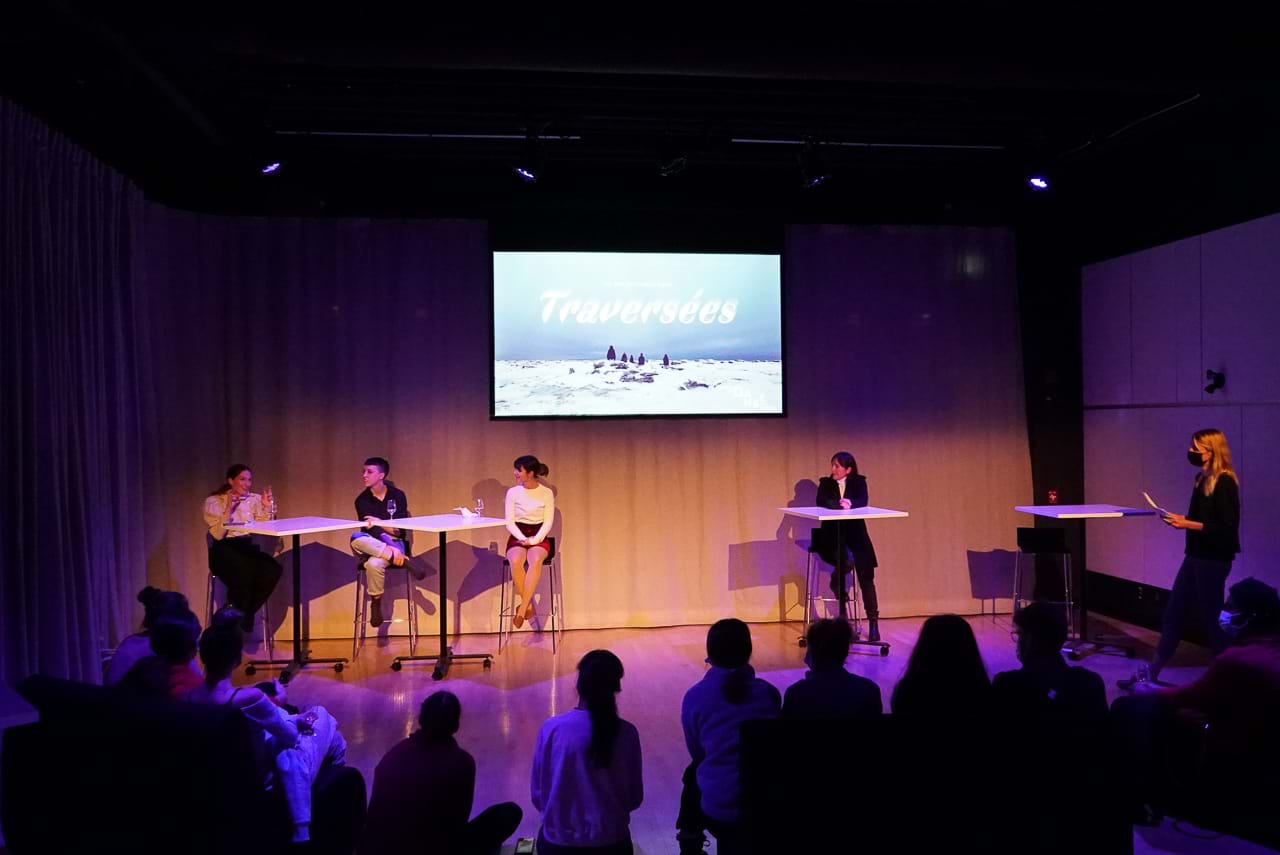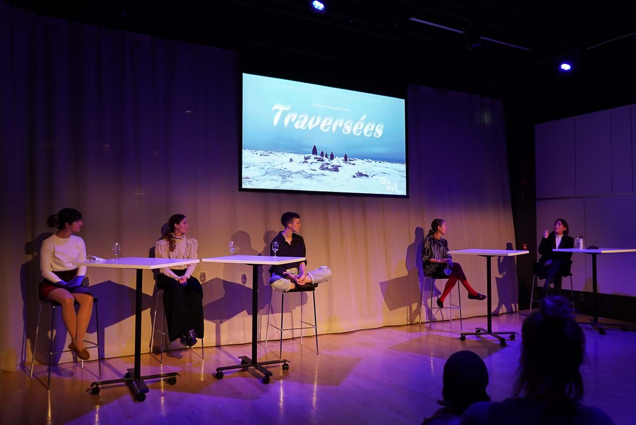 En plus du visionnement, le public a pu participer à une table-ronde avec les finissantes, maintenant diplômées, accompagnées de Chantal Caron, réalisatrice et idéatrice du film et de Lydia Wagerer, professeure et chargée du Projet de fin d’études. Ce fut une discussion bien enrichissante et inspirante qui a permis de mettre en lumière de précieuses informations sur les coulisses du tournage, tant du point de vue de la réalisatrice que de celui des danseuses.