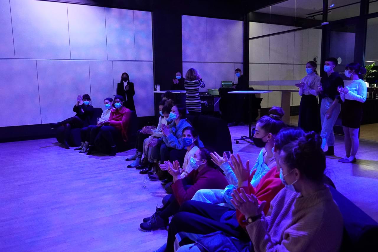 Le 2 décembre dernier, l'École a dévoilé devant public le résultat final de ce projet audacieux, dans le cadre d’un événement de lancement VIP à la Maison pour la danse de Québec. C’est en compagnie de chorégraphes, artistes professionnels du milieu, anciens diplômés et professeurs de l’École ainsi que de leurs proches que Victoria Côté, Maya Guy et Élodie Ouellet, les trois Finissantes 2021 présentes ont pu voir, pour la première fois, le fruit de leur travail sur grand écran.