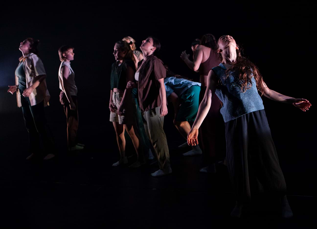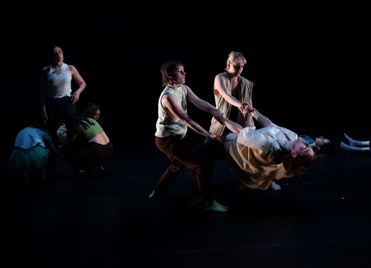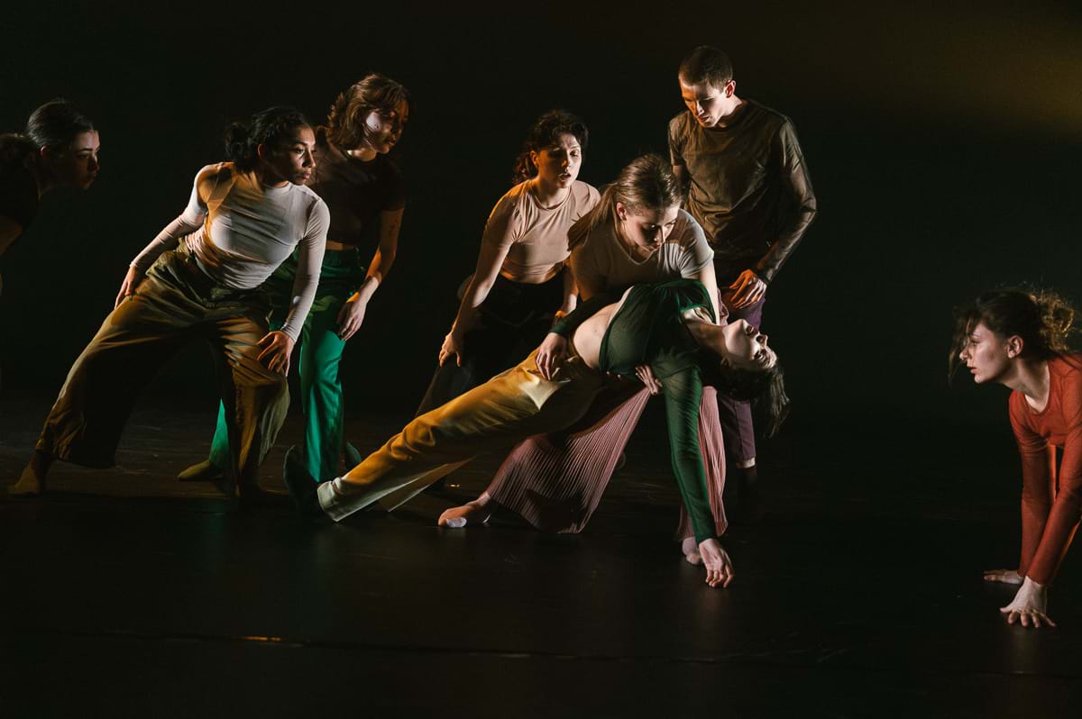 En mai dernier, les huits Finissant·es 2023 à la Formation supérieure en danse contemporaine de L’EDQ, un programme offert en partenariat avec le Cégep de Sainte-Foy, concluaient leur parcours scolaire en présentant C’est de toi que parle ce récit, le Spectacle de leur Projet de fin d’études, dans lequel culminait toute l’énergie, le travail et la passion investis durant leurs trois années de formation au programme. Ils et elles ont ainsi fait le saut vers le milieu professionnel en portant brillamment sur scène les œuvres de deux chorégraphes de renommée nationale et internationale aux univers distincts et singuliers avec qui ils et elles ont travaillé durant la session d’hiver 2023